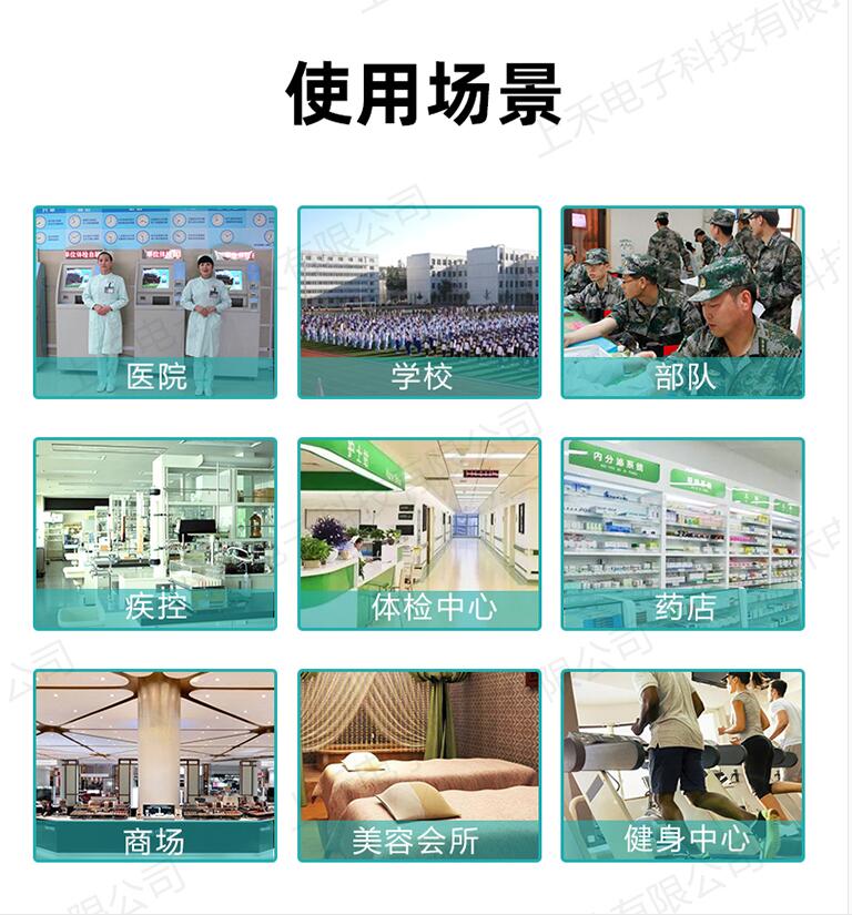 在應(yīng)用領(lǐng)域上,上禾智能身高體重秤均可適用醫(yī)院、社區(qū)體檢、學(xué)校、體檢中心、部隊(duì)、美容健身會(huì)所、商場(chǎng)、藥店、公安系統(tǒng)步行街等身高體重的測(cè)量場(chǎng)所;可選配、可定制、支持連鎖機(jī)構(gòu)、健康一體機(jī)配套方案。