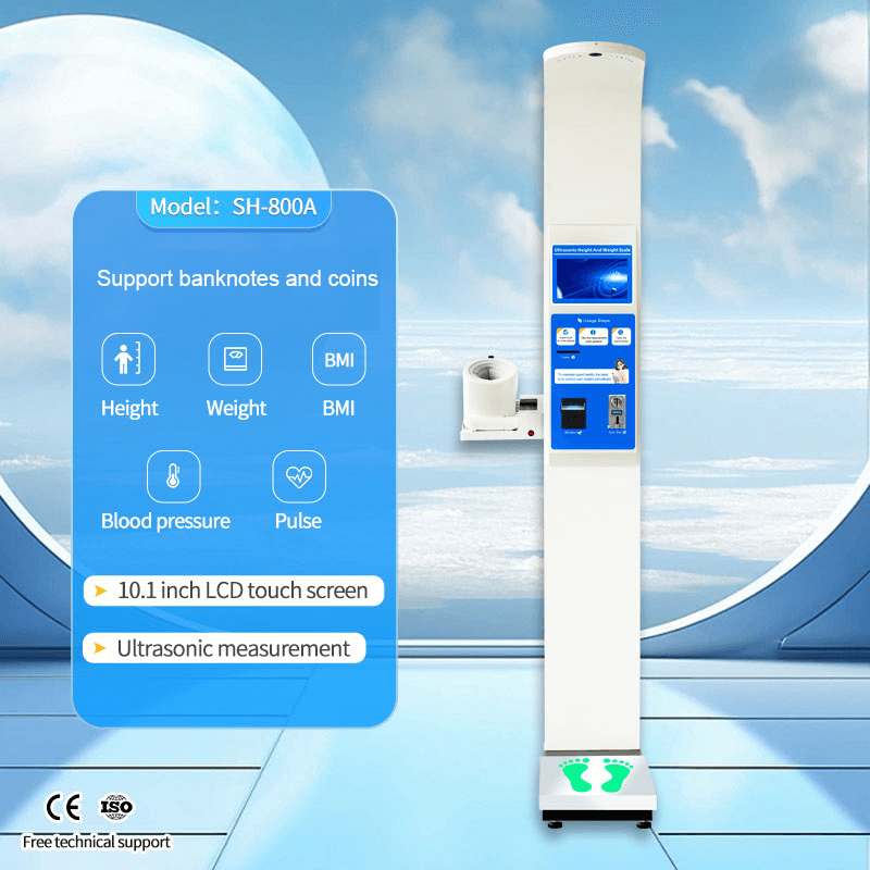 SH-800A投幣身高體重血壓心率一體機可識別100多個國家的幣種,可自由調(diào)整投幣個數(shù),同時支持投紙幣,支持英語、西語等多語言播報及打印小票。設(shè)備外觀大氣、造型美觀、耐用不易損壞,是一款功能多、實用性強的設(shè)備。